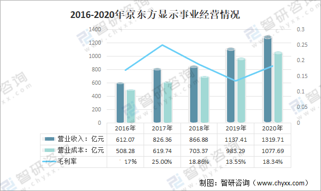 2016-2020年京東方顯示事業經營情況