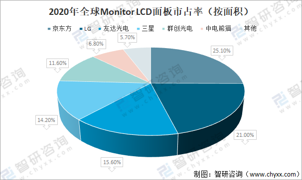 2020年全球MonitorLCD面板市占率(按面積)