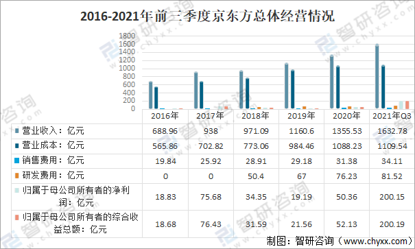 2016-2021年前三季度京東方總體經營情況