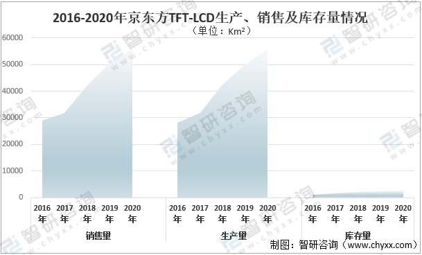 2016-2020年京東方TFT-LCD生產、銷售及庫存量情況