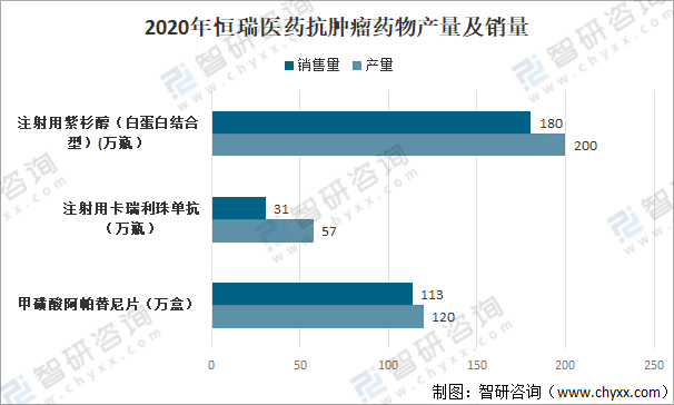 2020年恒瑞醫藥抗腫瘤藥物產量及銷量