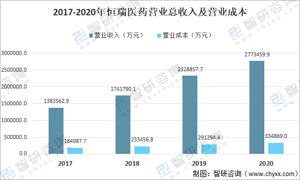 2017-2020年恒瑞醫藥營業總收入及營業成本