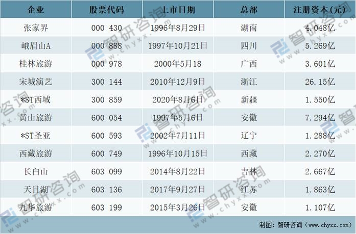 中國旅游景區行業重點上市企業基本情況