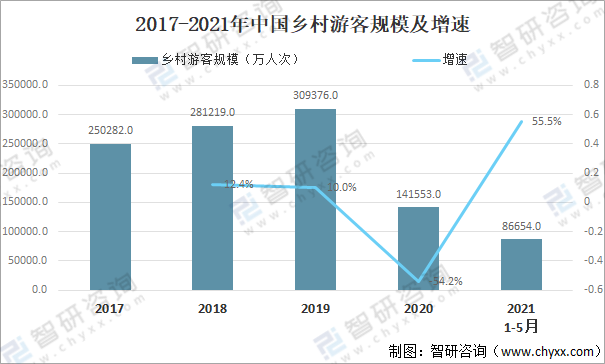 鄉村民宿、休閑農莊、特色莊園、田園綜合體、鄉村酒店、鄉村旅游度假區等的建設,將整合城鄉各種要素集聚發展,創造更多的美好鄉村生活空間,讓鄉村旅游在鄉村振興中集聚發力。2021年中國鄉村游客規模為86654萬人次,同比增長55.5%。