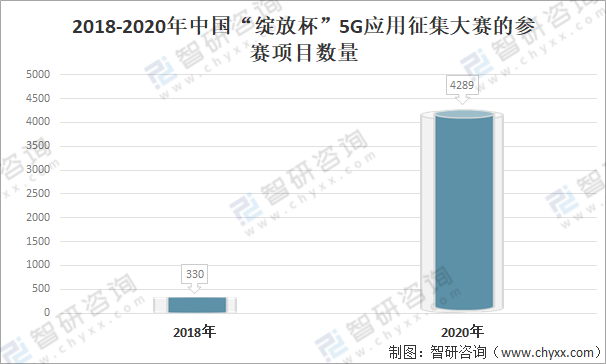 2018-2020年中國“綻放杯”5G應用征集大賽的參賽項目數量