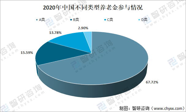按三支柱養(yǎng)老金的參與情況分為四類人群,A類為僅參加社保、無年金和商保的群體,占比為67.72%;B類為參加社保和企業(yè)年金、無商保的群體,占比為15.59%;C類為參加社保和商保、無年金的群體,占比為13.78%;D類為參加社保、年金和商保均參加的群體,占比僅為2.90%。