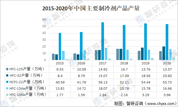 2015-2020年中國主要制冷劑產(chǎn)品產(chǎn)量