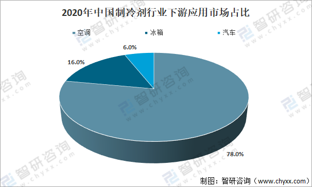 2020年中國制冷劑行業(yè)下游應(yīng)用市場占比