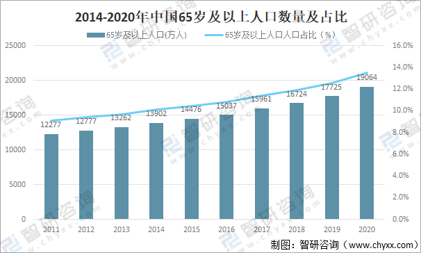 2014-2020年中國(guó)65歲及以上人口數(shù)量及占比