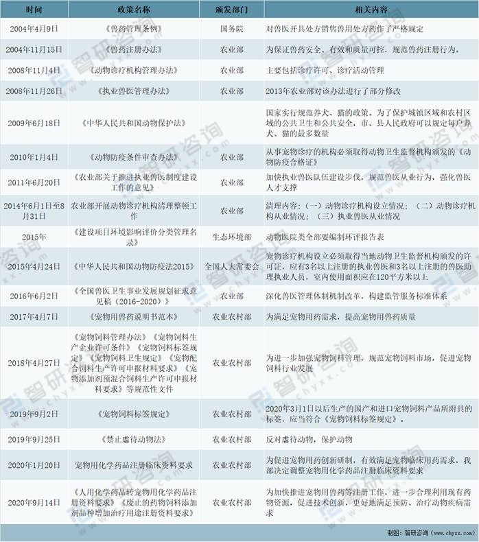 寵物行業(yè)作為新興行業(yè),發(fā)展初期行業(yè)不規(guī)范、監(jiān)管不到位,部分門店無證經(jīng)營(yíng)、環(huán)保設(shè)備缺失、醫(yī)生無證上崗、價(jià)格不透明等問題頻發(fā)。近年來國(guó)家出臺(tái)了一系列的法律法規(guī)以及開展了多次清理整頓工作來加強(qiáng)監(jiān)管和規(guī)范,促進(jìn)行業(yè)有序、健康發(fā)展。