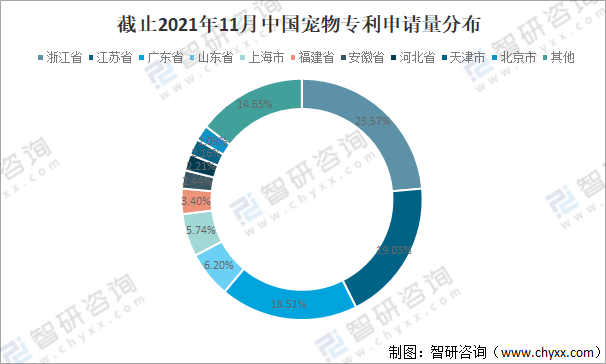 截止2021年11月中國(guó)寵物專利申請(qǐng)量分布