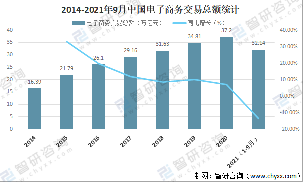 2014-2021年9月中國(guó)電子商務(wù)交易總額統(tǒng)計(jì)