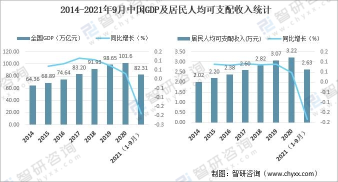2014-2021年9月中國(guó)GDP及居民人均可支配收入統(tǒng)計(jì)