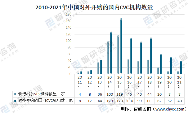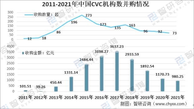 2011-2021年中國CVC機(jī)構(gòu)數(shù)并購情況