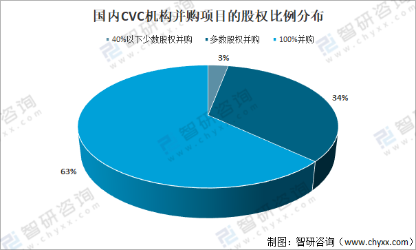 國內(nèi)CVC機(jī)構(gòu)并購項(xiàng)目的股權(quán)比例分布