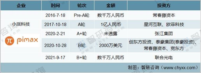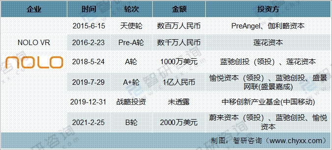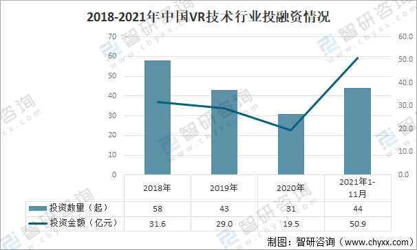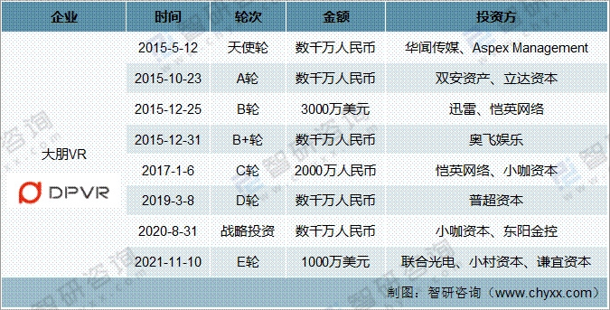 2021年中國VR行業重點融資超億元事件(截止11月)