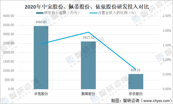 2020年中寵股份、佩蒂股份、依依股份研發(fā)投入對(duì)比