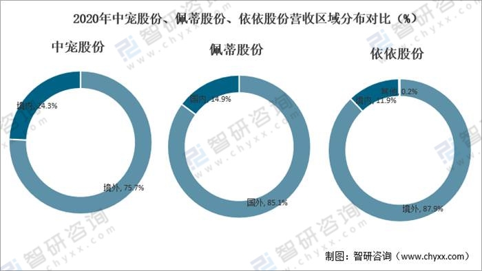 2020年中寵股份、佩蒂股份、依依股份營(yíng)收區(qū)域分布對(duì)比(%)
