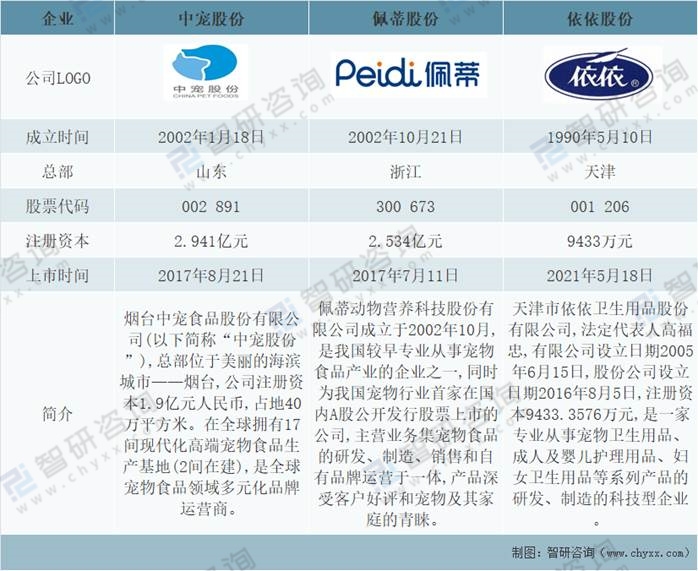 隨著中國(guó)寵物市場(chǎng)的高速發(fā)展,涌現(xiàn)一匹如中寵股份、佩蒂股份、依依股份等最具代表性的優(yōu)秀企業(yè),從成立時(shí)間來(lái)看,依依股份成立時(shí)間要早于中寵股份和佩蒂股份,但佩蒂股份上市時(shí)間要早于中寵股份和依依股份,中寵股份總部在山東,佩蒂股份總部在浙江,依依股份總部在天津。