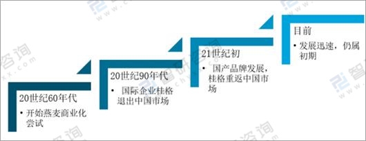 燕麥的起源中心有4個,分別是中國的西部、地中海北岸、前亞伊朗高原和東非的埃塞俄比亞高原,我國燕麥種植歷史悠久,20世紀60年代以前以種植地方品種為主,60年代以后以種植引進雜交品種為主,目前我國的燕麥片市場的發(fā)展進入相對平穩(wěn)的增長期,核心體現(xiàn)在市場的主要玩家基本確定,與此同時產(chǎn)品形態(tài)也相對固化。