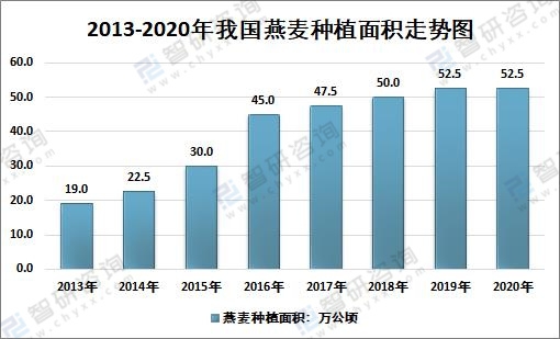 隨著人們對燕麥營養(yǎng)價值及保健功能認知程度的提高以及畜牧業(yè)發(fā)展的需要,我國對燕麥以及燕麥產(chǎn)品的需求在不斷增長,我國燕麥種植業(yè)以農(nóng)戶為主,但規(guī)模化種植企業(yè)參與程度有所提升。根據(jù)美國農(nóng)業(yè)部統(tǒng)計數(shù)據(jù):2013年我國燕麥種植面積為19.0萬公頃,2019年種植面積增長至52.5萬公頃,2020年國內(nèi)種植面積與上年度持平。