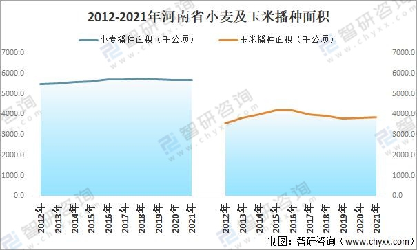 小麥及玉米為河南省重要的糧食作物品種,其中小麥產量占全國總產量的3成左右;2020年河南省小麥播種面積為5690.7千公頃,玉米播種面積為3853.3千公頃。截止2021年12月,河南省已完成8500萬畝的麥播任務,其中7000多萬畝冬小麥已經出苗,為2022年夏糧生產打好了基礎。