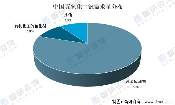 根據資料:用作合金添加劑,占五氧化二釩總消耗量的80%左右,其次是用作有機化工的催化劑,即觸媒,約占總量的10%,另處用作無機化學品、化學試劑、搪瓷和磁性材料等約占總量的10%。