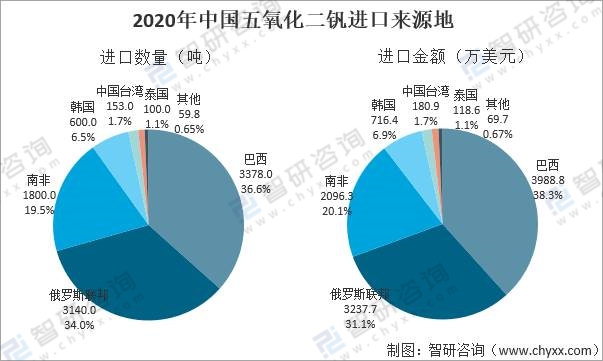 2020年中國五氧化二釩進口來源地