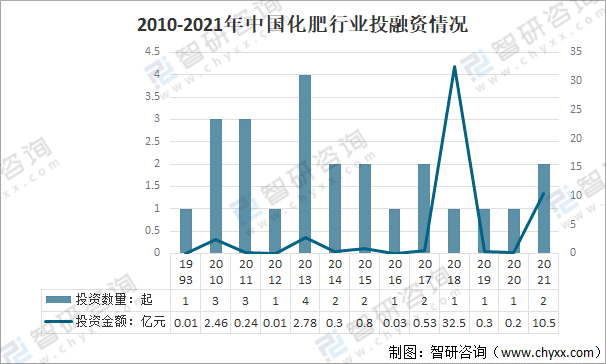 2010-2021年中國化肥行業投融資情況