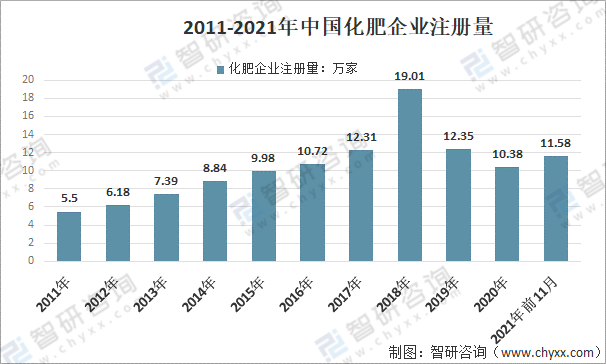2011-2021年中國化肥企業注冊量