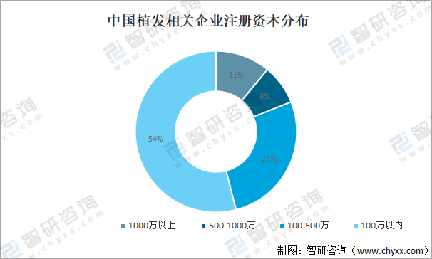 目前,中國植發相關企業注冊資本在1000萬以上的占11%;500-1000萬的占8%;100-500萬的占27%;超過50%的企業注冊資本控制在100萬以內。
