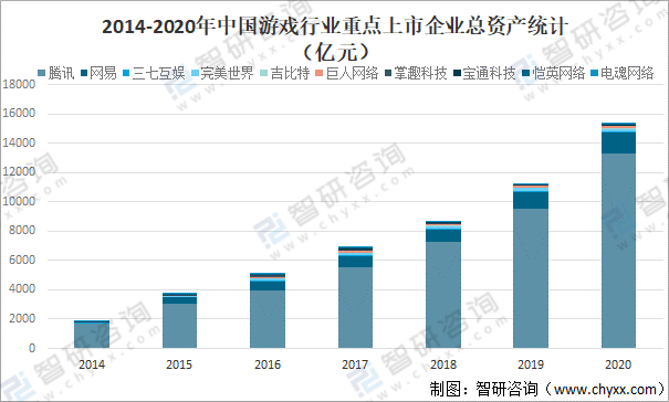 2014-2020年中國游戲行業重點上市企業總資產統計(億元)
