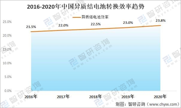 2016-2020年中國(guó)異質(zhì)結(jié)電池轉(zhuǎn)換效率趨勢(shì)