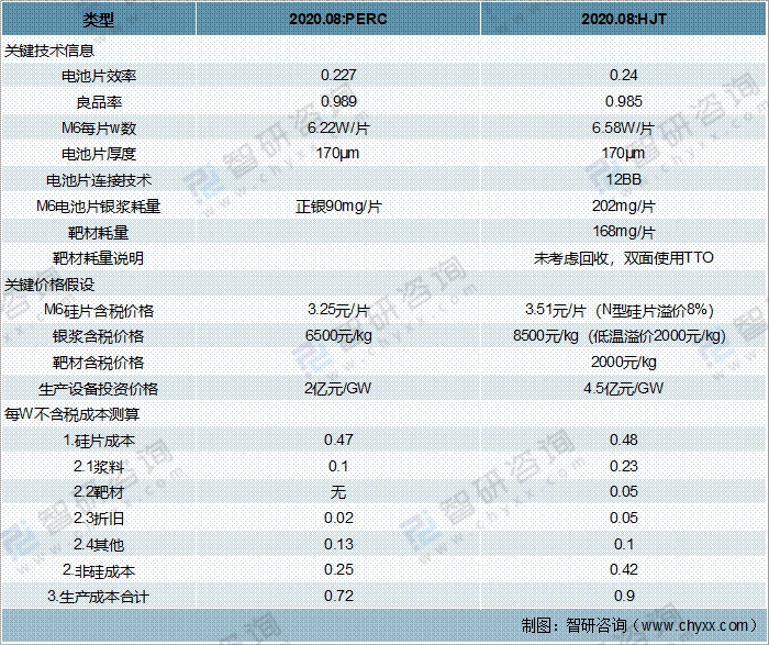 PERC與HJT電池的成本對(duì)比
