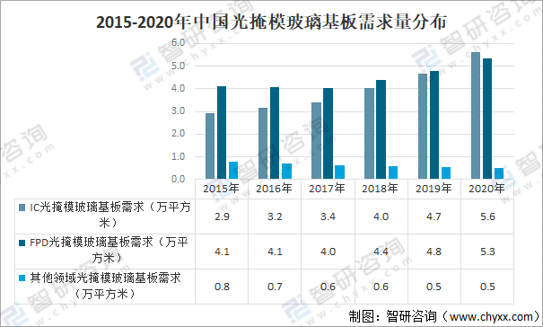 2015-2020年中國(guó)光掩模玻璃基板需求量分布