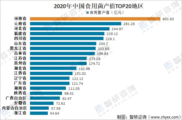 2020年中國食用菌產值TOP20地區