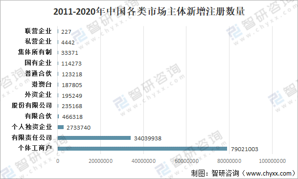 2011-2020年中國各類市場主體新增注冊數量