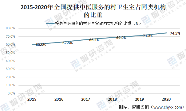 2020年末,全國提供中醫服務的村衛生室占同類機構的74.5%,較2019年的比例提升3.2個百分點。