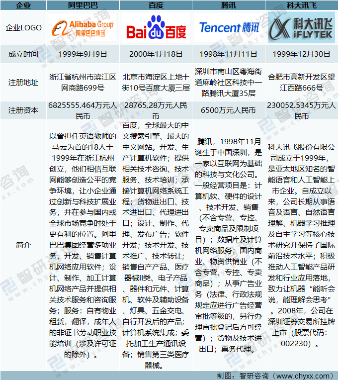 阿里巴巴、百度、騰訊、科大訊飛的基本情況對比分析
