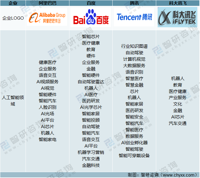 二、人工智能產業重點企業分析