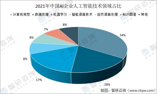 2021年中國AI企業人工智能技術領域占比