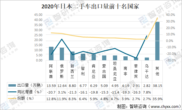 2020年日本二手車出口量前十名國家