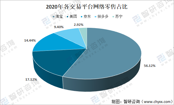 2020年各交易平臺(tái)網(wǎng)絡(luò)零售占比