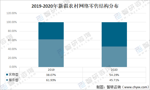 2019-2020年新疆農(nóng)村網(wǎng)絡(luò)零售結(jié)構(gòu)分布