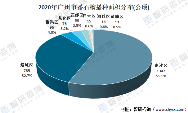 2020年廣州市番石榴播種面積分布