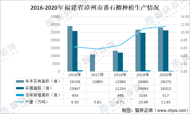 2016-2020年福建省漳州市番石榴種植生產(chǎn)情況