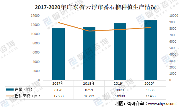 2017-2020年廣東省云浮市番石榴種植生產(chǎn)情況