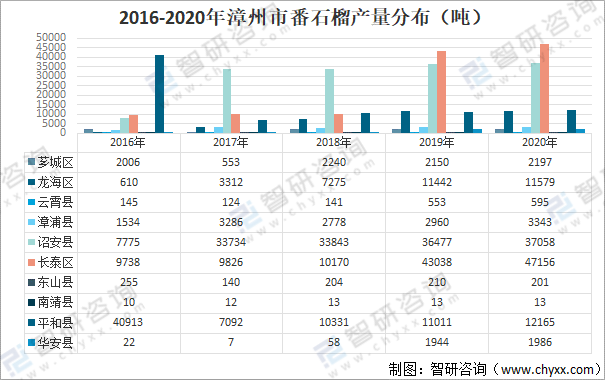 2016-2020年漳州市番石榴產(chǎn)量分布(噸)