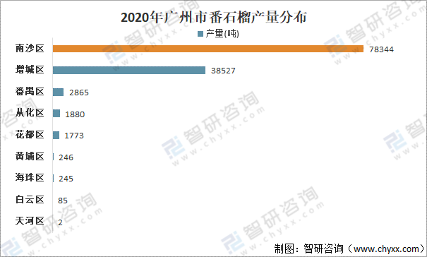 2020年廣州市番石榴產(chǎn)量分布