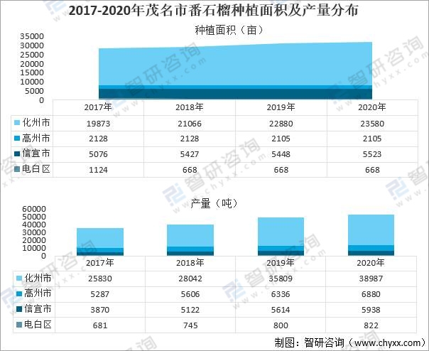 2017-2020年茂名市番石榴種植面積及產(chǎn)量分布
